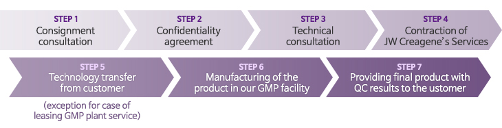 JW Creagene is a specialized company for manufacturing and developing patient customized cell therapy products, dendritic cell vaccines targeting various types of solid cancers and autoimmune diseases. All cell therapy products in JW Creagene are manufacturing in our GMP facility, which was approved by KFDA in 2007, under the well-defined guidelines and QC protocols. Now, JW Creagene has launched a CMO service for researchers and companies needing GMP level manufacturing of cell therapy products. Based on over 12 years of skills and experiences running GMP facility, JW Creagene’s CMO service will provide an ideal solution for managing/manufacturing GMP grade cell therapy products for customers. JW Creagene’s CMO offers the following services: