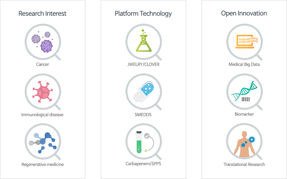 needs, concentrating on the development of innovative new medicines using the JW’s unique technology, and conducting research activities in line with global trends through open innovation.