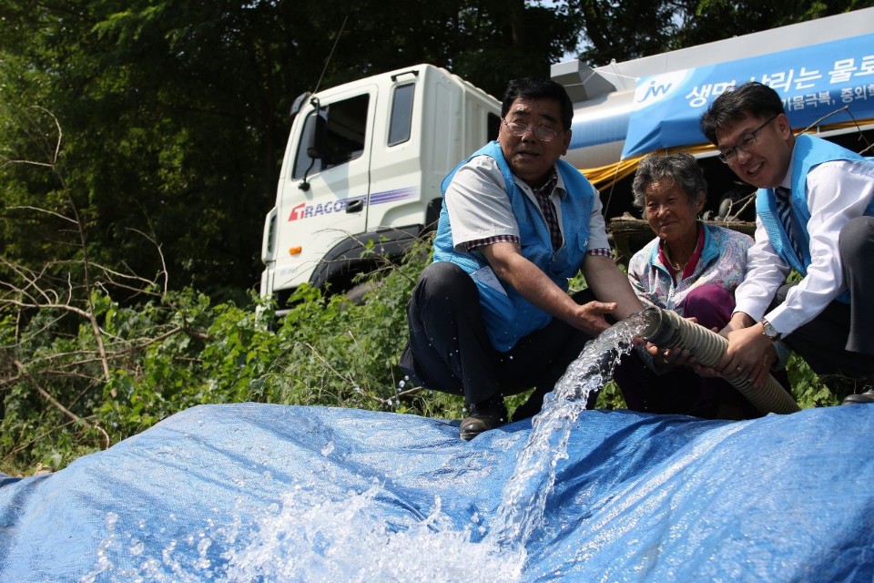삼투현상으로 발생하는 압력의 원리를 반대로 적용한 역삼투막정수장치(RO : Reverse Osmosis)를 통해 주사액 제조과정에서 발생하는 미생물과 바이러스, 중금속 등 각종 불순물을 깨끗하게 걸러내고 있습니다. 이를 통해 가뭄이나 농번기 농업용수 부족으로 어려움을 겪고 있는 지역사회 주민들을 위해 인근 농가에 일반 생활용수 수질의 농축수를 공급하고 있습니다.
