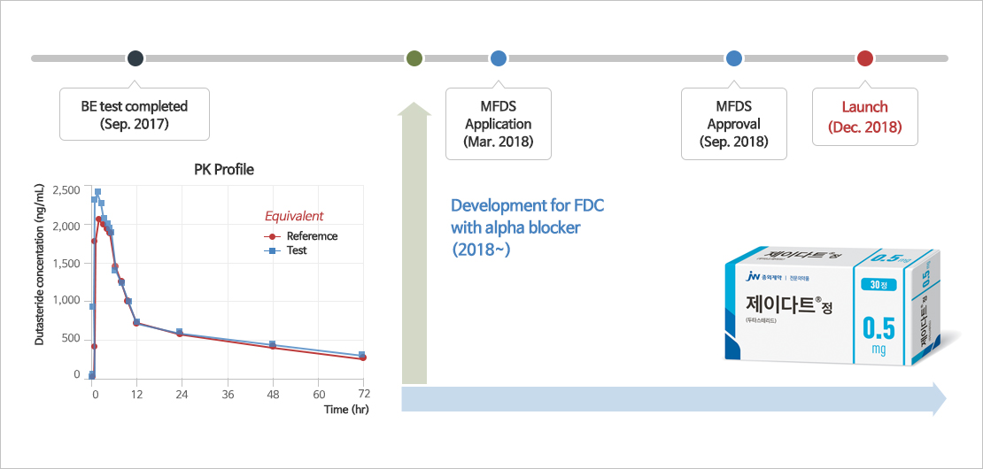 아시아의 보유 기술은 난용성약물을 가용화 시키는 SMEDDS 기술을 적용하고 흡착제에 흡착시켜 고형화함으로써, 정제로 개발될 수 있도록 고안된 제제 기술로, 종래의 두타스테라이드 연질캡슐을 정제로 고형화하여 온도에 민감한 연질캡슐의 단점을 극복하고 복용편의성을 증대하였습니다.
